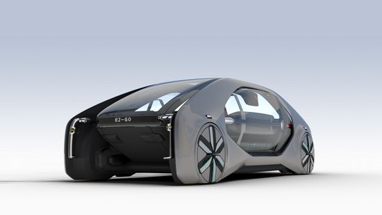 Simultaneamente veículo e serviço, o Renault EZ-GO é o primeiro concept de robô-veículo elétrico, autónomo e partilhado, que permite aos utilizadores deslocarem-se desde um local identificado - uma estação - ou geolocalizado por uma aplicação. Para a Renault, a implementação deste tipo de serviços, ligados às infraestruturas urbanas e associados a sensores inteligentes, a análises de dados, a serviços conectados ou ainda a sistemas multimodais, terá um papel fundamental no sucesso das soluções de mobilidade e das cidades inteligentes do futuro.