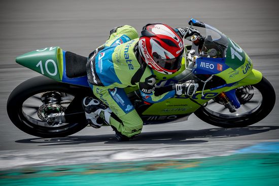 Após uma sexta-feira de treinos privados que marcou acima de tudo o regresso ao asfalto para pilotos e equipas – e onde Afonso Almeida se estreou no Circuito do Estoril – O dia de Sábado foi reservado para os treinos cronometrados onde o piloto da Charneca da Caparica colocou a moto com as cores da BP Ultimate na ‘pole-position’ para as 14 voltas de corrida, posição essa que ‘confirmou’ no Domingo ao ser o primeiro a cruzar a linha de meta naquela que foi igualmente a sua primeira corrida no Circuito do Estoril e a sua quarta corrida aos comandos desta mesma moto.
