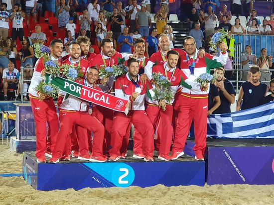 São de prata as primeiras medalhas de sempre de Portugal nos Jogos do Mediterrâneo de praia Patras 2019. Tanto a seleção feminina como a masculina enfrentaram a anfitriã Grécia na final da competição e não conseguiram ser mais fortes, acabando por conquistar a medalha de prata. Se na final feminina a Grécia se impôs por 2-0, na vertente masculina o jogo foi disputado até ao último momento e decidido apenas nos shootouts, depois de empate no final dos dois períodos.