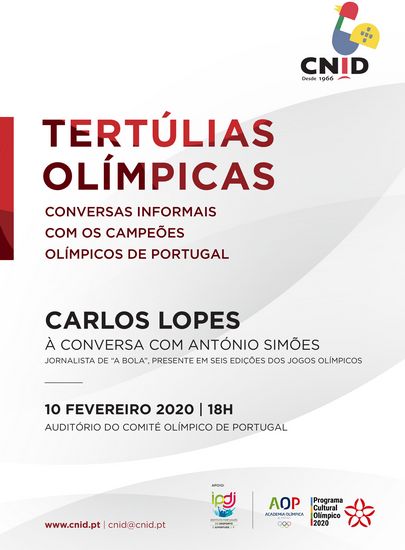 O CNID - Associação dos Jornalistas de Desporto organiza ao longo deste ano tertúlias com os quatro campeões olímpicos portugueses, no âmbito do Programa Cultural Olímpico 2020 promovido pela Academia Olímpica de Portugal.