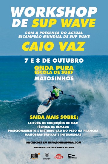 O brasileiro Caio Vaz é um dos atletas que mais se tem destacado no mundo do SUP (Stand Up Paddle). Depois da conquista de dois títulos mundiais, o brasileiro junta-se agora à iniciativa “Porto e Matosinhos Wave Series 2017” para um workshop onde dará a conhecer as principais técnicas e manobras da modalidade. Serão dois dias de muita aprendizagem onde os participantes terão a oportunidade de surfar ao lado do melhor atleta de sup wave do mundo.