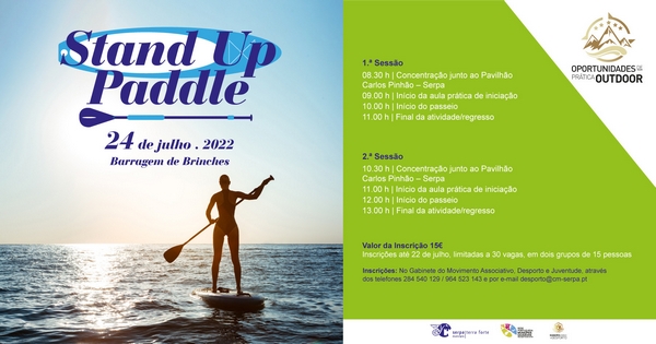 A Barragem de Brinches recebe, no próximo dia 24 de julho, duas aulas de Stand Up Paddle. Os interessados podem inscrever-se no Gabinete do Movimento Associativo, Desporto e Juventude, através dos telefones 284 540 129/ 964 523 143 e por e-mail Este endereço de email está protegido contra piratas. Necessita ativar o JavaScript para o visualizar..