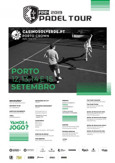 Entre os dias 12 e 15 de Setembro, decorre no Porto a última etapa do CasinoSolverde.pt Triple Crown 2019, que conta com jogadores de renome, entre eles a recente vencedora do World Padel Tour, Ana Catarina Nogueira, que se encontra na oitava posição do ranking mundial, após um feito histórico para o Padel português, em Madrid.