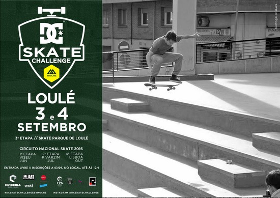 A 3 e 4 de Setembro, Loulé prepara-se para ser ‘invadida’ pela comunidade skater nacional. Skaters Iniciados, Amadores e Profissionais rumam este fim de semana ao Sul do País para disputar a 3ª Etapa do Circuito Nacional, DC Skate Challenge by Moche.