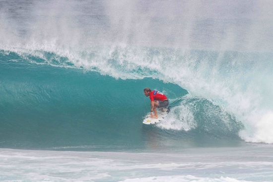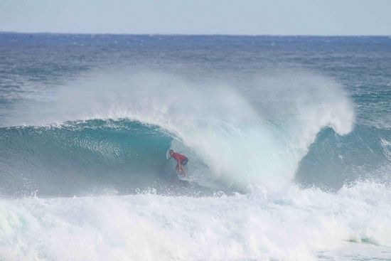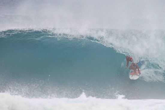 o brasileiro Luel Filipe e o havaiano Joshua Moniz, que conseguiu a melhor onda do campeonato na fase anterior, graças a um tubo incrível, que lhe valeu a única nota 10 de todo o evento.