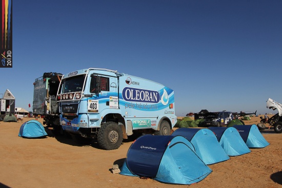O Team Oleoban /MAN Portugal, que completou a primeira etapa disputada na Mauritânia em 1h41m27s, encontra-se, agora, com uma vantagem de cerca de 1h19m para Tomas Tomecek, terceiro classificado. Na geral Elisabete Jacinto mantém-se no top 10 e figura, neste momento, no sétimo posto da tabela conjunta auto-camião. Os russos da equipa oficial da Kamaz mantêm a liderança da categoria.