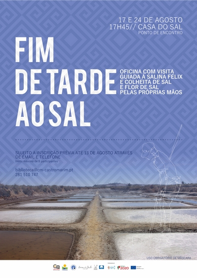 O “Fim de Tarde ao Sal” é uma ação organizada pelo Município de Castro Marim e Associação Odiana, integrada no programa Bandeira Azul 2020 e enquadrada na da candidatura “Patrimónios de Castro Marim: Valorização e Promoção de Produtores Locais e Produtos Endógenos”, comparticipada pelo PO CRESC 2020, projeto PADRE, apoiada por Portugal e União Europeia, cofinanciada a 70% pelo FEDER.