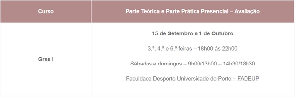 Após a normalização da situação de Pandemia/Endemia da Covid-19, a participação no curso será realizada de forma presencial (unicamente) nas instalações da Faculdade de Desporto da Universidade do Porto (FADEUP).