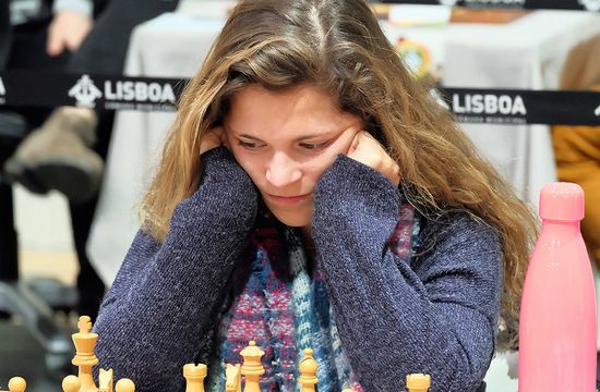 Rita Jorge, jogadora do Galitos, cotada com 1902 pontos Elo, venceu, desta vez, um jogador com mais 326 pontos (2229) e já procura uma norma para mestre internacional feminina.